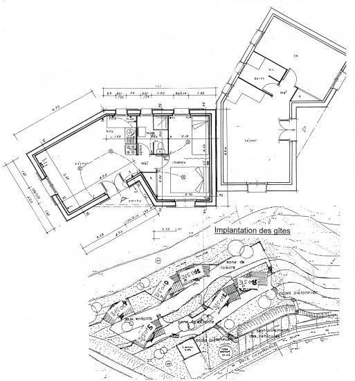 Chaque gîte a son espace extérieur privatif. 4è gîte : séjour, coin-cuisine équipé, 1ch(1 lit 2 pers), 1 coin nuit communiquant avec la chambre principale avec 2 lits 1 pers supp, salle d'eau avec wc, chauff électr. Vals les Bains (thermes, casino, cinéma,...) et Neyrac les Bains à 15 min. Caution ménage : 100 euros.