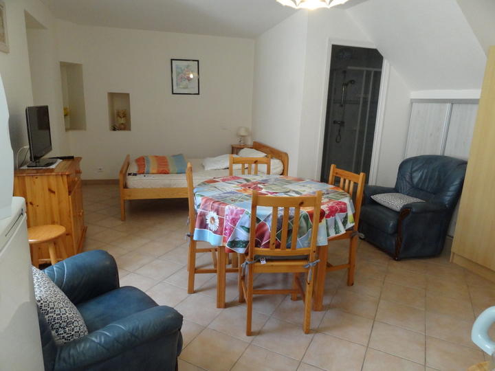 Studios situés au centre du village. Pour 1 à 2 personnes. Au 1er et au 2ème étages. Composition de chacun : lit 140, TV, coin cuisine, réfrigérateur, micro-ondes, mini four et salle d'eau.