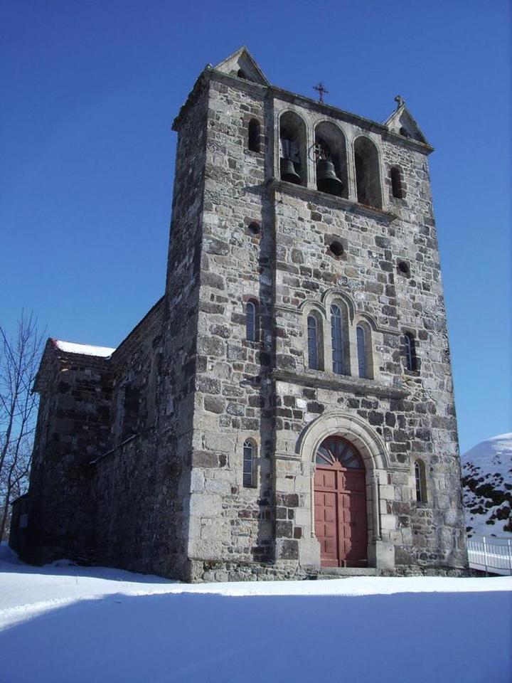 Elle est construite sur le modèle de la cathédrale du Puy en roches volcaniques provenant de l'ancienne église située sur le piton rocheux tout à côté et, qui était devenue trop petite. Le patrimoine est d'ailleurs en cours de restauration.